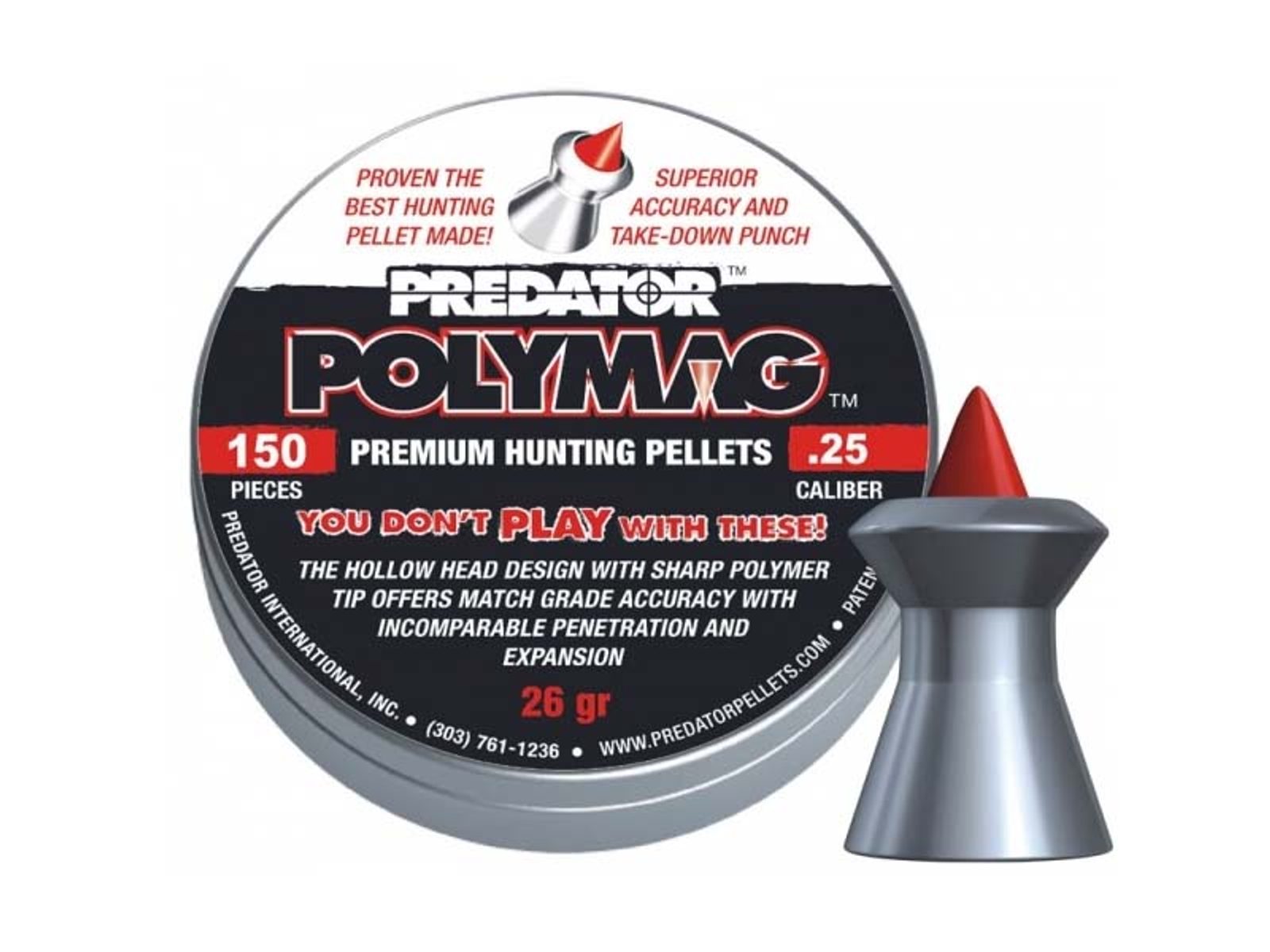 Oblíbené lovecké diabolky ve světě, převážně v USA s precizní výrobou JSB. Predator PolyMag 150ks cal. 6,35mm jsou speciální diabolky, které spojující výhody špičatých diabolek typu straton a diabolek s dutinkou. Špička diabolek Predator PolyMag je z polymeru čímž se zjednoduší vstup diabolky do cíle a uplatní maximální výstup díky dutině v diabolce.