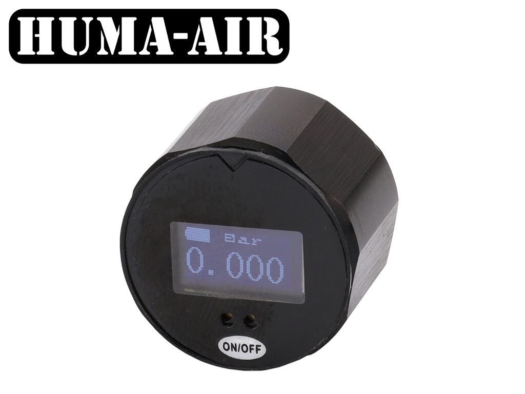 Digitální mini manometr Huma slouží k přesnému a snadno viditelné kontrole skutečného tlaku ve zbrani. Průměr manometru je 25 mm. O-LED displej. Manometr je vybaven baterií CR2032 a možností externího nabíjení kabelem přes USB. Závit 1/8". Manometr měří tlak do 300 BAR.