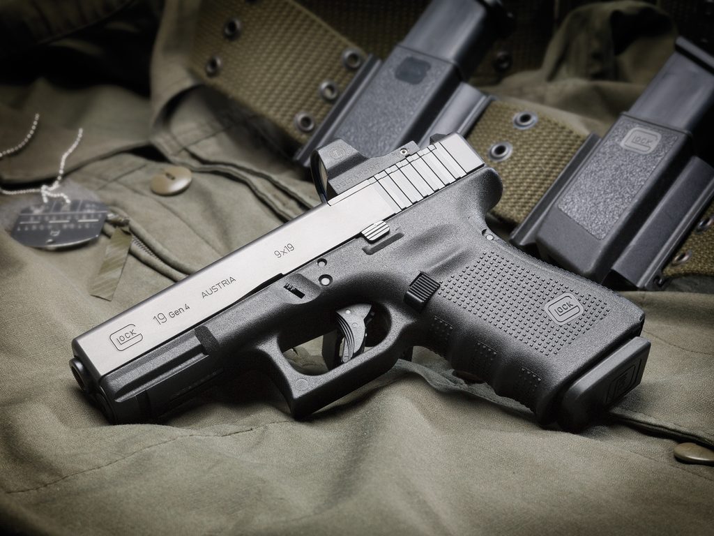 Pistole GLOCK 19 MOS Gen. 4 s dvouřadým zásobníkem je v ráži 9x19. Pistole je snad nejčastější volbou střelců pro denní nošení a sebeobranu. Standardně jsou pistole Glock dodávány v sadě s 3 ks zásobníky na 15 nábojů. Dále je dodáván s kufříkem na zbraň, základním čištěním a výměnnými hřbety s bobřím ocasem o dvou rozdílných šířkách aby sedly každé ruce a 2 výměnnými hřbety pro rozšíření rukojeti (výměnný dlouhý pin a nástroj pro výměnu hřbetů). Model 19 je častou volbou střelců, kteří chtějí spolehlivou a pohodlnou zbraň pro sebeobranu a zájmovou střelbu na střelnici. Zbraň má služební rozměry (policejní velikost pistole - Compact) a nízkou hmotnost.
