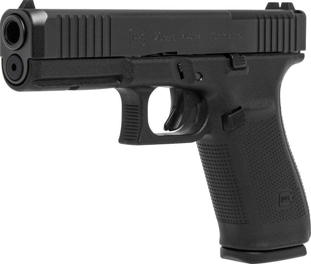 Pistole GLOCK 20 MOS Gen. 5 s dvouřadým zásobníkem je v ráži 10 mm Auto. Pistole je vhodná pro denní nošení a terčovou střelbu. Standardně jsou pistole Glock dodávány v sadě s 2 ks zásobníky na 15 nábojů. Dále je dodáván s kufříkem na zbraň, základním čištěním a výměnnými hřbety s bobřím ocasem o dvou rozdílných šířkách aby sedly každé ruce (výměnný dlouhý pin a nástroj pro výměnu hřbetů). Model 20 je častou volbou střelců, kteří chtějí spolehlivou a pohodlnou zbraň pro sebeobranu i proti medvědům (nejprodávanější zbraň na Aljašce na obranu proti losům a medvědům grizzly) a zájmovou střelbu na střelnici. Zbraň má služební rozměry (vojenská velikost pistole - Full Size) a nízkou hmotnost.