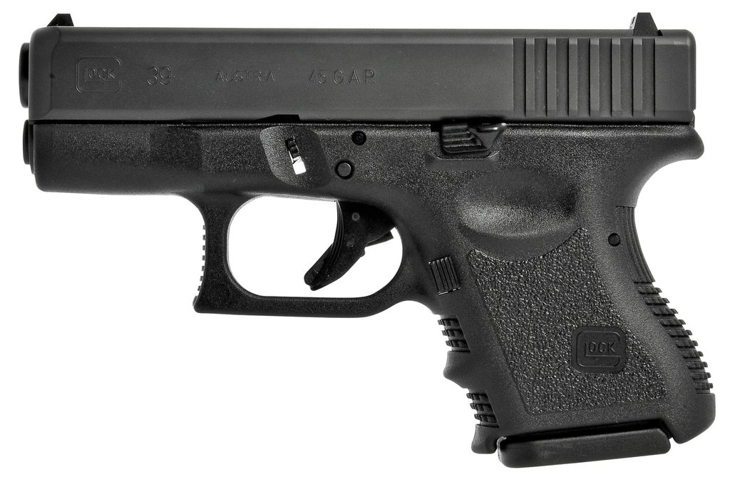 Pistole GLOCK 39 Gen. 3 s dvouřadým zásobníkem je v ráži .45 G.A.P. Pistole je snad nejčastější volbou střelců pro denní nošení a sebeobranu. Standardně jsou pistole Glock dodávány v sadě s 2 ks zásobníky na 6 nábojů. Dále je dodáván s kufříkem na zbraň, základním čištěním. Model 39 je častou volbou střelců, kteří chtějí spolehlivou a pohodlnou zbraň pro sebeobranu. Zbraň má kompaktní rozměry (velikost pistole - Subcompact) a nízkou hmotnost. Je tak ideální pro skryté nošení.