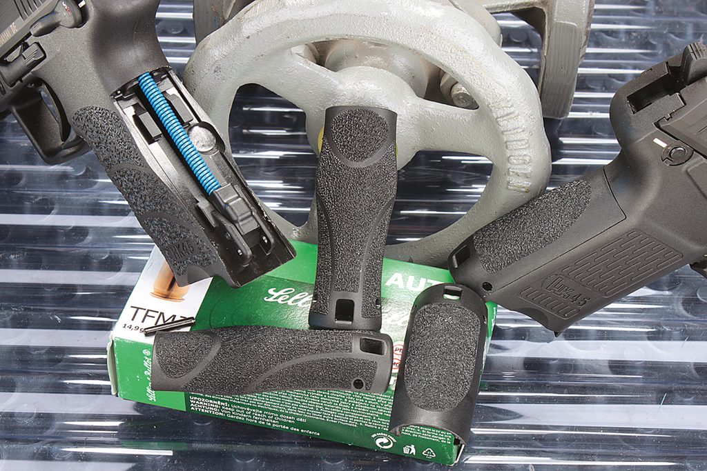 Zbraň je dodávány s kufříkem, 2 zásobníky a výměnnými gripy.