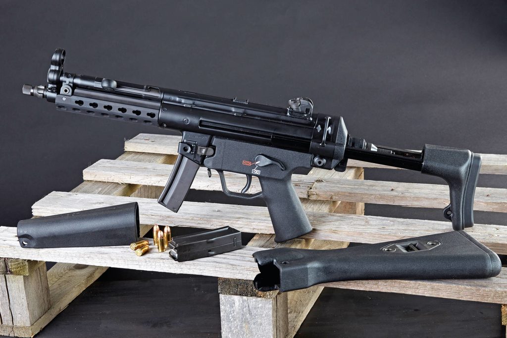 Heckler & Koch SP5 je prodávána jako samonabíjecí puška v ráži 9 mm Luger (9X19). Tato zbraň je civilní variantou legendárního samopalu H&K MP5K (Kurz), která je používána profesionály po celém světě. Model MP5 se nejvíce proslavil při operaci Nimrod, kdy Britská speciální jednotka SAS zasahovala na Íránské ambasádě v Lodíně. Řada zbraní MP5 vychází z pušky G3 používající zmenšený a upraveny válečkový mechanismus (roller delayed blowback).