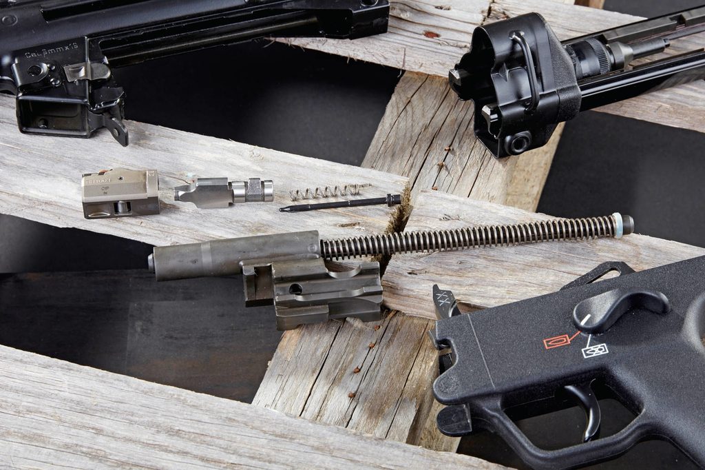 - Zbraň používá zásobníky typu MP5 pro ráže 9 mm Luger.