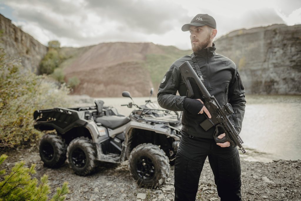 Kvalitní poloautomatická puška typu AR-15 německé firmy Hera Arms 15th - s délkou hlavně 7,5". Ráže .223 Remington. Stoupání hlavně je 1/9. Zbraň je osazena montážní lištou weaver 22 mm pro umístění optického zařízení a jiného příslušenství nad hlaveň. Předpažbí je vybaveno montážním systémem typu key-mode. Hlaveň je osazena tlumičem záblesku A2. Pistolová rukojeť má krytý prostor v rukojeti pro příslušenství (baterie,...). Pevná pažba typu A2. Barva černá.