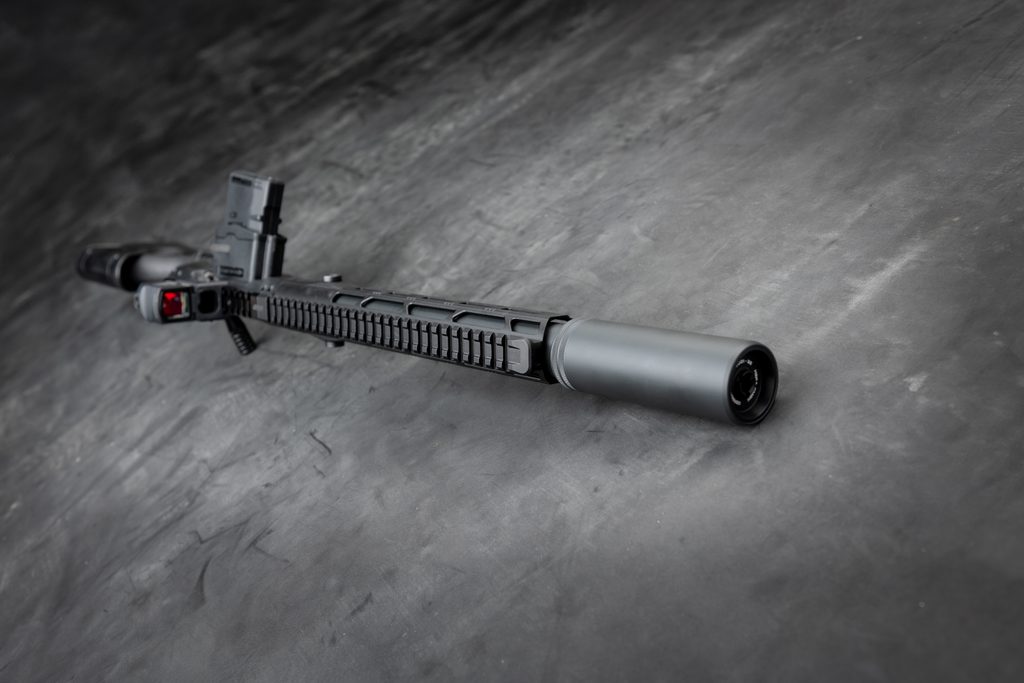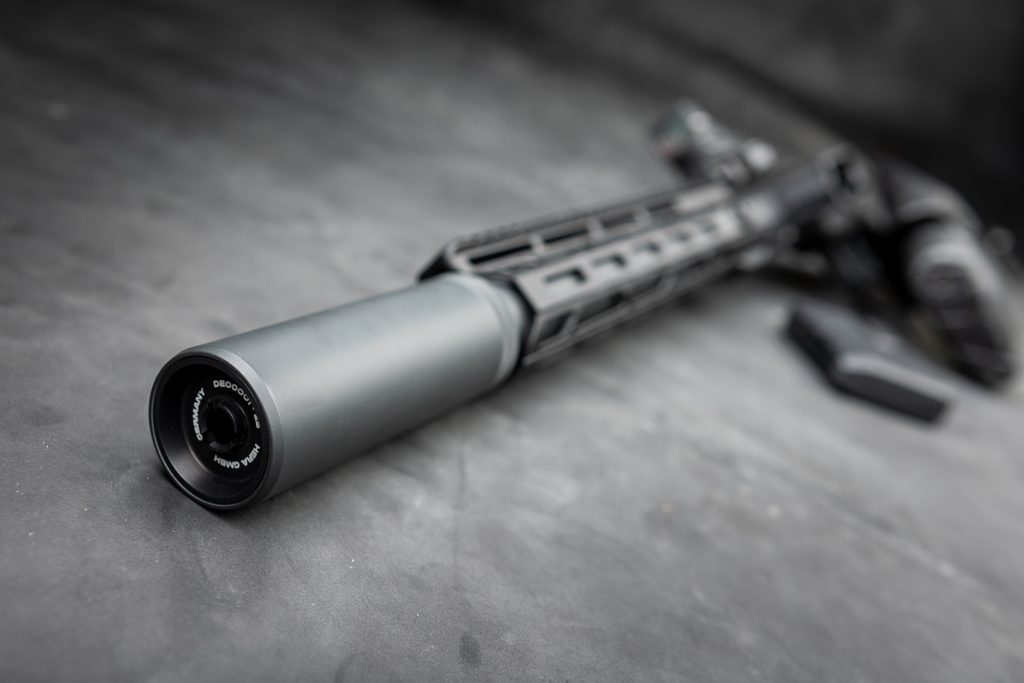 The smooth integration of the suppressor into the handguard, both with identical diameters, ensures an sleek look and improved handling.