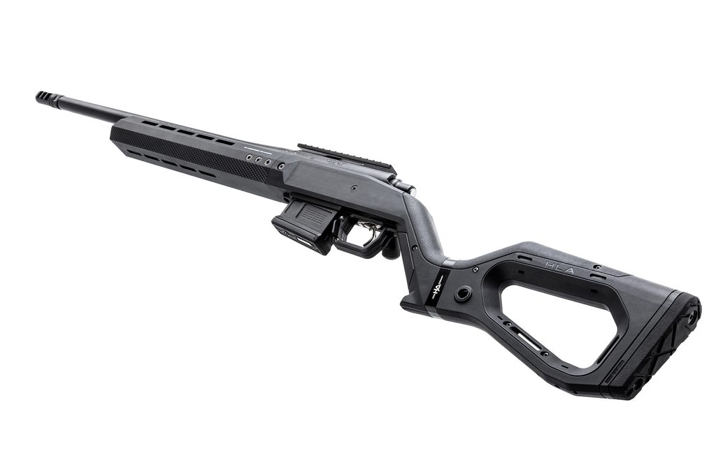 Součástí dodávky jsou dvě rozpěrky pro nastavení délky pažby pro personalizací pažby. Navíc má Hera H7 polymerovou opěrku tváře a 5 ranný zásobník kompatibilní s AICS z výroby Hera Arms.