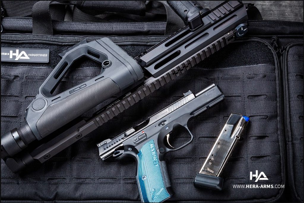Hera Arms TRIARII musí mít každý, kdo chce ze své pistolí vytěžit maximum. Pistole lze během pár sekund přestavět na sportovní pistolovou karabinu bez nutnosti jakýchkoli úprav původní zbraně. Pistole se uchycuje zasunutím zbraně do předpažbí a zajišťuje se aretací otočného mechanismu. S možností nastavení úhlu na pažbě Vám konverzní kit poskytne pevný a pohodlný úchop při střelbě. Kit je vybaven lištami picatinny a je u něj možné nainstalovat pažbu pro AR-15 což tomuto kitu nabízí vysoký stupeň modularity.