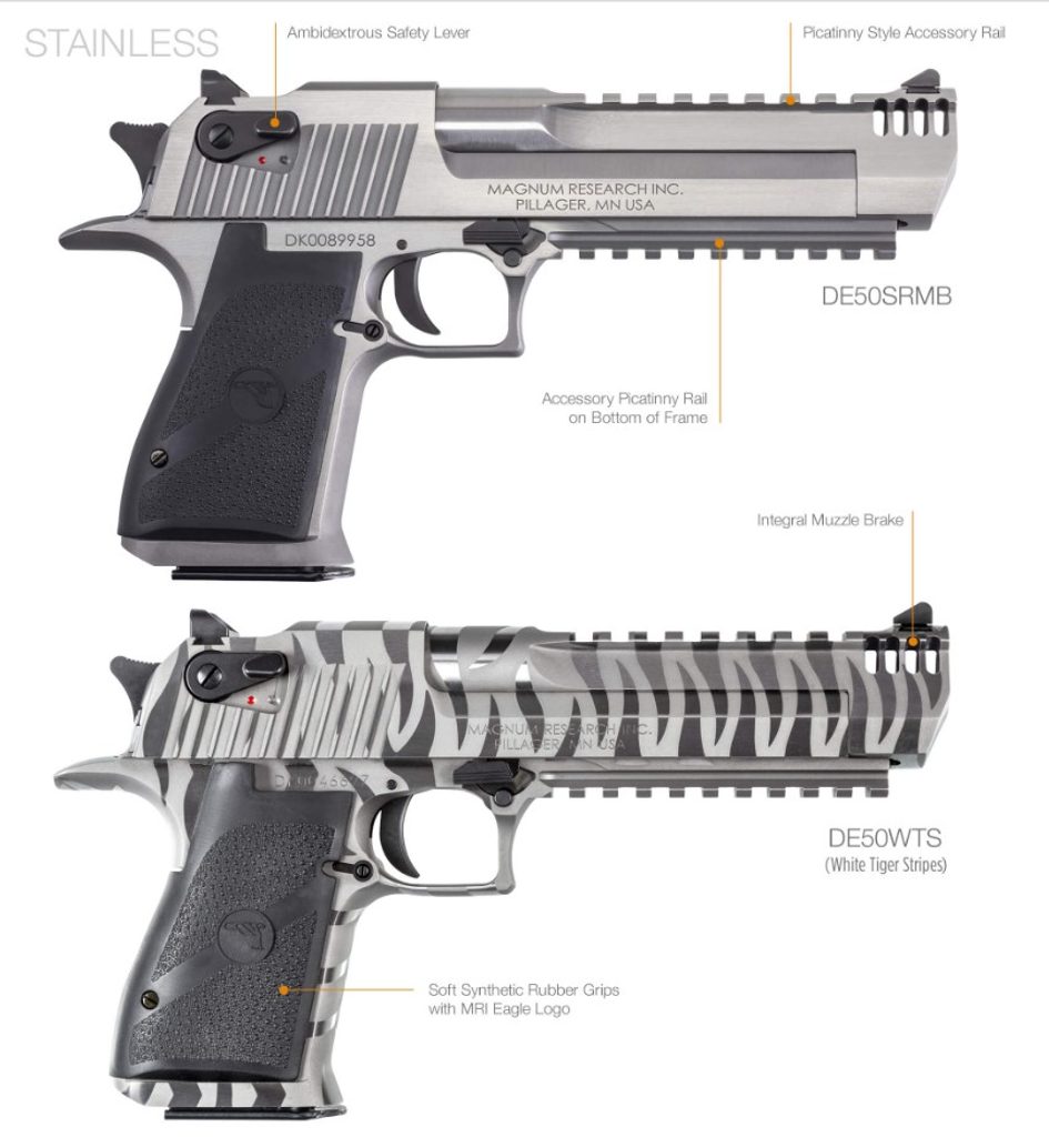 Po 25 letech, kdy byla pistole Desert Eagle® Pistol prezentována a glorifikována v bezpočtu filmů, televizních pořadů a videoher, se stala ikonou popkultury. Desert Eagle Pistol si můžete přizpůsobit různými působivými povrchovými úpravami, abyste této nadčasové střelné zbrani dodali svůj osobitý šmrnc. Všechny modely jsou vybaveny kompletní lištou picatinny pro příslušenství na hlavni od konce komory až přímo za mušku vzadu na závěru je pistole vybavená standardními oboustrannými pojistkami. Picatinny/Weaver lišta 22 mm pro příslušenství. Integrovaný kompenzátor na hlavni.