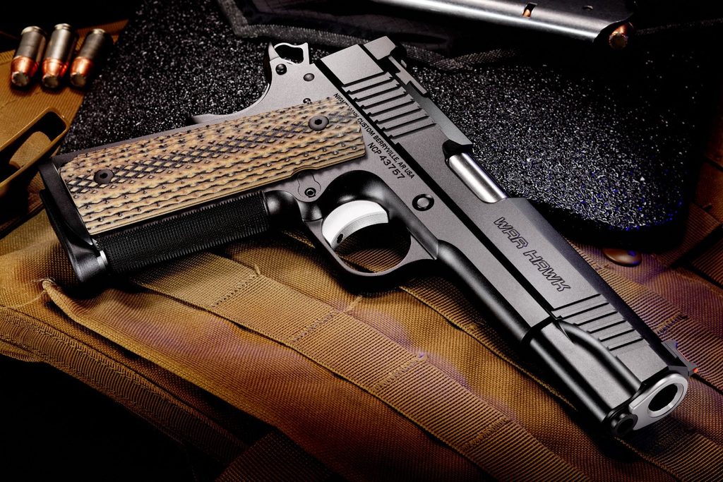 War Hawk má unikátní tri-cut závěr s horním zdrsnění, které vede k hrotu šipky, aby vynikl mezi ostatními 1911. Kromě dalších vylepšení, je to jediný model, který zahrnuje hledí Jardine Tactical Hook jako standardní prvek. Systém EVERLAST™ Recoil je navíc dodáván s vodicí tyčinkou po celé délce a umožňuje střelcům vystřelit nejméně 5 000 ran bez jediné výměny vratné pružiny. Agresivní zdrsnění pro  natahování závěru poskytuje jistý úchop při natahování závěru a jednodílný magwell/domeček spouště umožňuje rychlé a jisté opětovné přebíjení. Součástí této pistole je také korunková hlaveň se zkoseným a zapuštěným dorazem závěru jako standardní výbava. Stejně jako mnoho modelů firmy Nighthawk, i tato zbraň může být postavena s naším rámem s railem, což z ní dělá první volbu mnoha taktických operátorů.