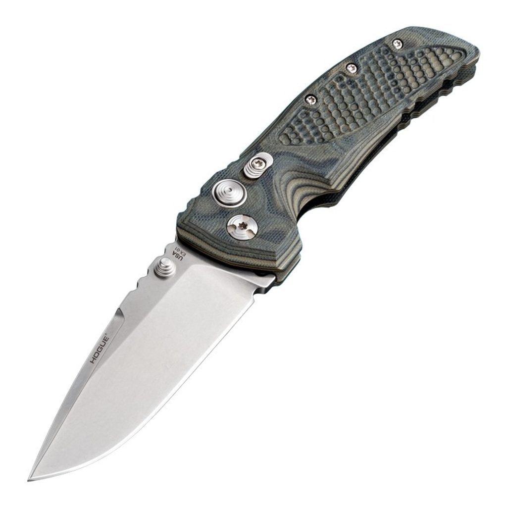 Nůž Hogue EX-01 3,5" Drop Point Blade G-Mascus Black, který navrhnul Allen Elishewitz. Čepel Drop Point s oboustranými palcovými čepy. Materiál čepele je z kryogenicky ošetřené nerezové oceli 154CM (tvrdost 57-59 HRC) s ručně broušeným ostřím. Zámek PushButton s manuální pojistkou pro uzamčení. Rukojeť G-10 G-Mascus s texturou Mini Piranha. Pocket clip je vpravo, střenka obsahuje průvlak pro lanyard. Celková délka nože 203 mm, délka čepele 89 mm a délka rukojeti 114 mm. Vyrobeno v USA.
