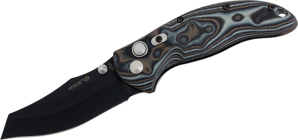 Zavírací nůž Hogue EX-04 3,5" Wahrncliffe G-10 Gray Lava, který navrhnul Allen Elishewitz. Čepel Wahrncliffe z kryogenicky ošetřené nerezové oceli 154CM (tvrdost 57-59 HRC) s povrchovou úpravou černý cerakote. Zámek PushButton s manuální pojistkou. Rukojeť G-10 G-Mascus s texturou Mini Piranha. Pocket clip je vpravo, střenka obsahuje díru pro lanyard. Celková délka nože 203 mm, délka čepele 89 mm a délka rukojeti 117 mm. Vyrobeno v USA.