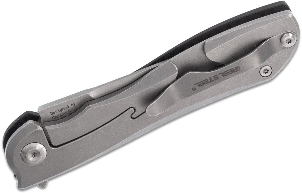 Nůž Real Steel Megalodon Revival s čepelí z oceli N690 o délce 100 mm. Tloušťka čepeli 3,05 mm. Celková délka nože 222 mm, hmotnost nože 130 g. Zámek frame lock, povrchová úprava čepele stonewash.