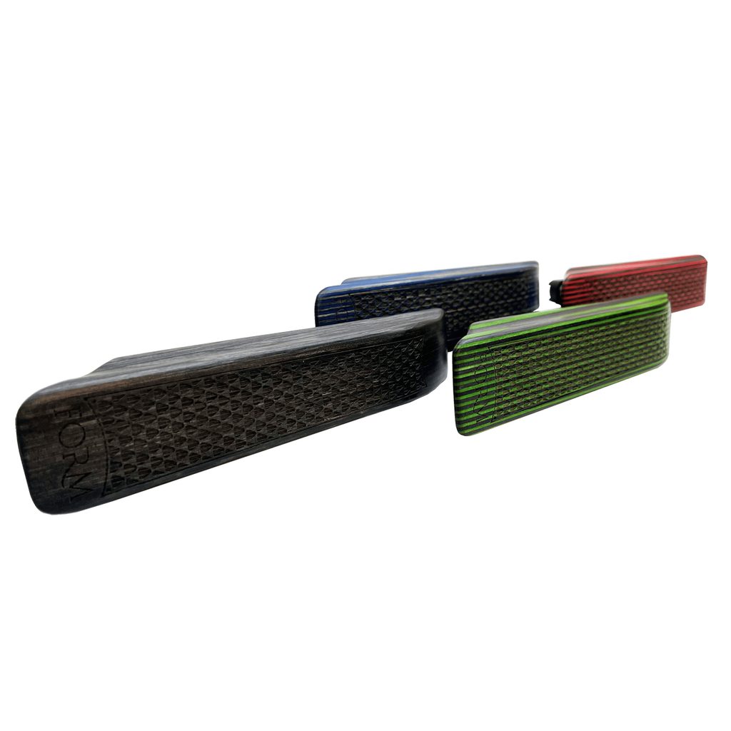 Perfektní doplněk pro použití FT, nabízíme širokou řadu opěrek dlaně, které budou perfektně sedět k pažbám Chieftain. Tyto dlaňové opěrky využívají vysoce kvalitní nastavovací mechanismus z černého eloxovaného hliníku, který poskytuje vertikální nastavení až 25 mm. Spodní strana dlaňové opěrky je vybavena naší jedinečnou kontrolou úchopu trojúhelníkového vzoru. Ty jsou k dispozici v řadě laminátových barev, aby ladily s barevně laminovanými lícnicemi vaší pažby typu Chieftain.