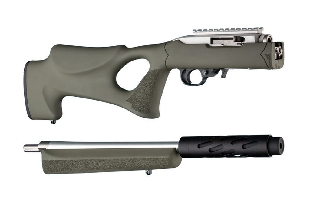 Pažby Hogue pro pušky Ruger 10/22 Take Down. Pažby jsou v provedení s otvorem thumbhole v pažbě pro standardní hlaveň