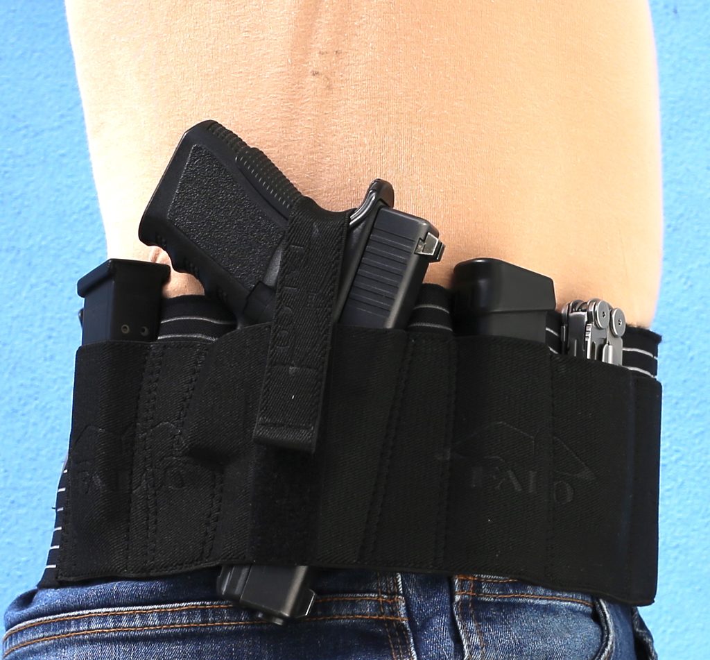 Elastický pás Falco - zbraň je v elastickém pásu velmi stabilní, přiléhá k tělu a pod oblečením není viditelná. Pás je vyroben z kombinace plného a prodyšného materiálu. Pás B102 nabízí ideální kompromis mezi pevností materiálu a komfortem nošení. Pás obsahuje pouzdro na zbraň , 2 zásobníky a doklady.