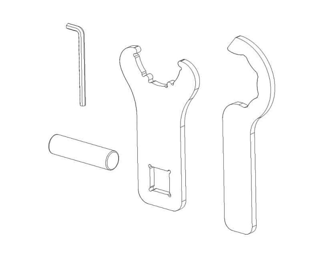 Sada nářadí potřebného k demontáži ústí hlavně brokovnice Kel-Tec KS7 a montáž doplňků na hlaveň