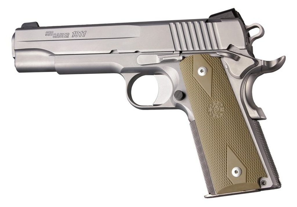 - Hogue tvaruje své syntetické rukojeti tak aby odpovídaly ortopedickému tvaru ruky s vybráním pro prsty a příjemným zdrsněním.