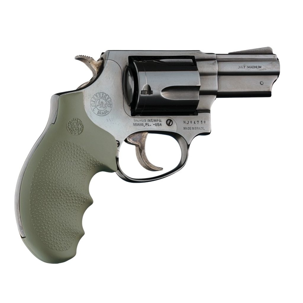 Gumové rukojeti Hogue jsou tvarovány z odolného syntetického kaučuku, který není houbovitý ani lepkavý, ale zároveň poskytuje měkký pocit pohlcující zpětný ráz bez ovlivnění přesnosti. Tento moderní kaučuk vyžaduje zcela odlišný proces lisování než běžný neopren, což má za následek mnohem lepší přilnavost. Flexibilita použitých materiálů a proces tvarování umožňuje vyrábět pryžové rukojeti s vlastnostmi, které fungují pro všechny zbraně.