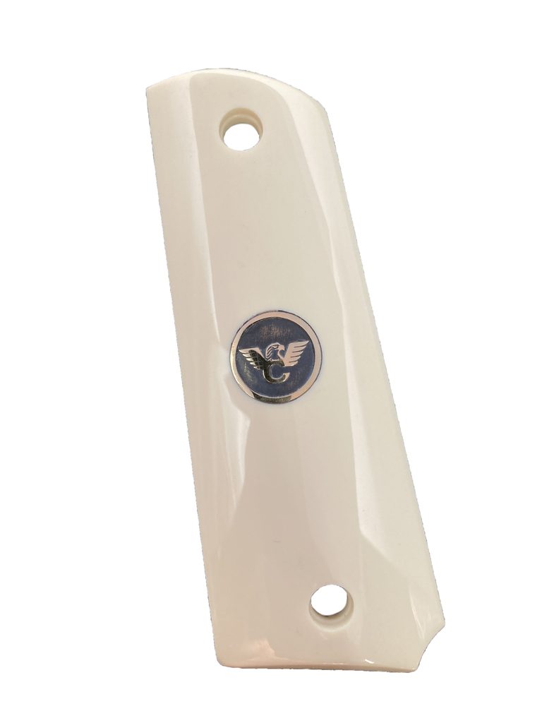 Střenky tureckého výrobce KSD pro pistole 1911 Govt. & Commander + klony Full Size v provedení akrylát v barvě slonovinová kost se stříbrným logem.