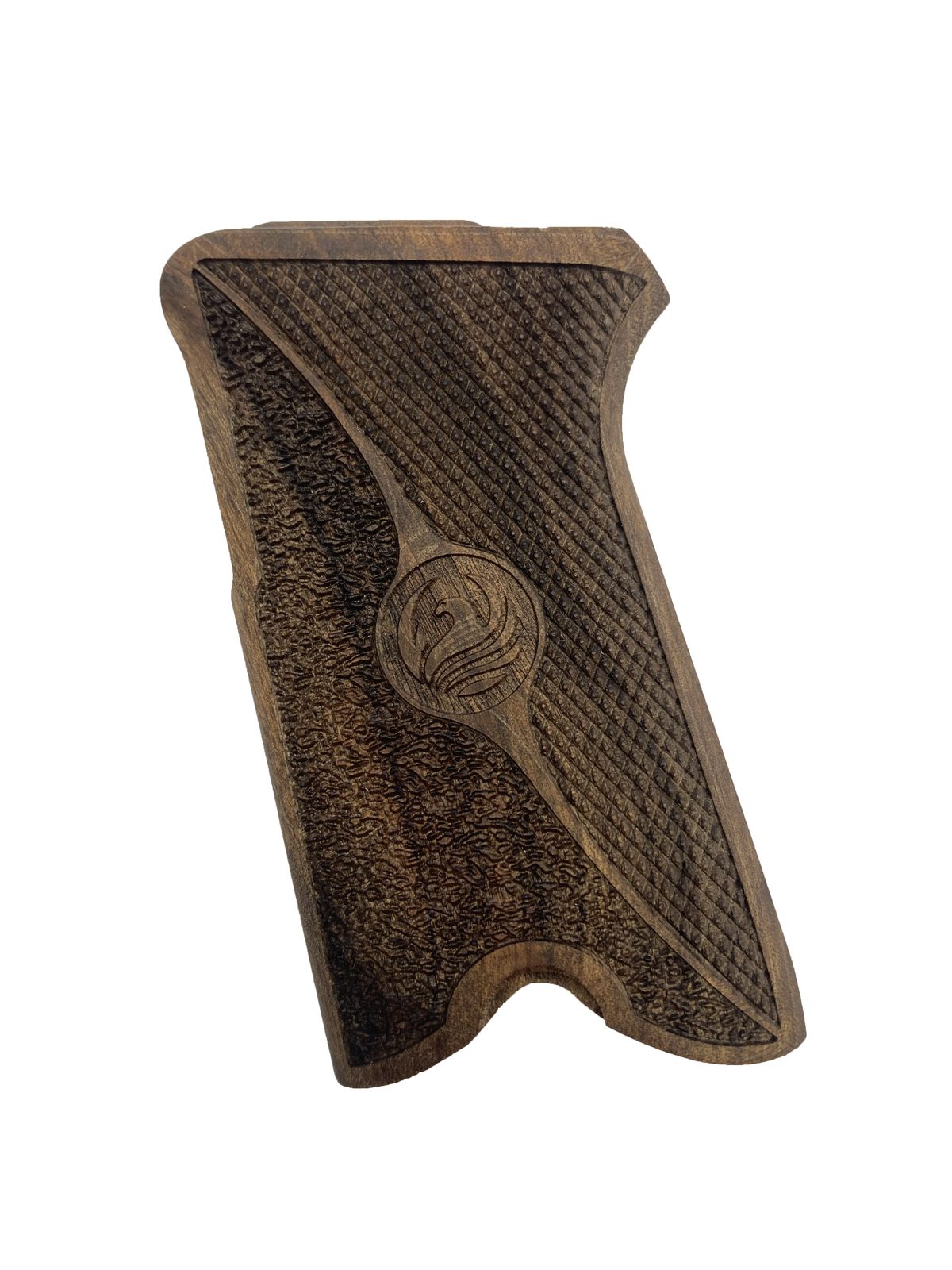 Střenky tureckého výrobce KSD pro pistoli Ruger P85-P91 turecký ořech s logem.