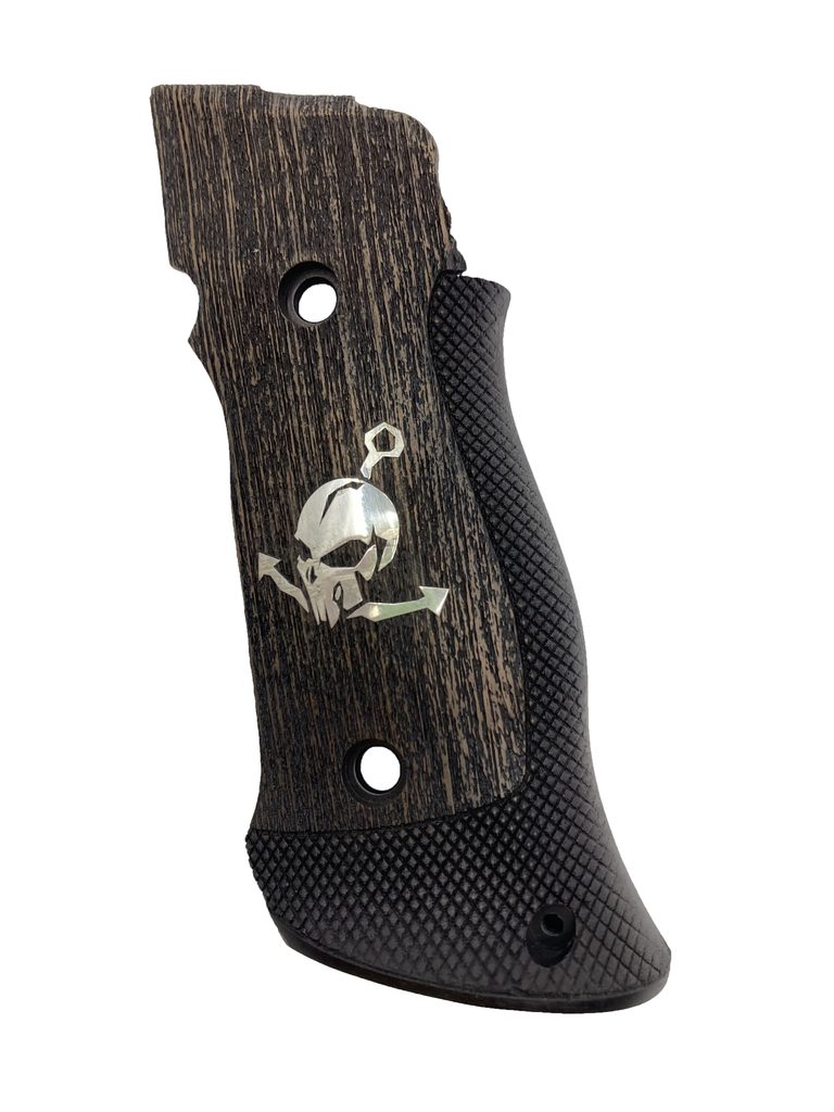 Ergonomické střenky tureckého výrobce KSD pro pistole Sig Sauer P226 SAO, X-Five a X-Six turecký ořech se stříbrným motivem.