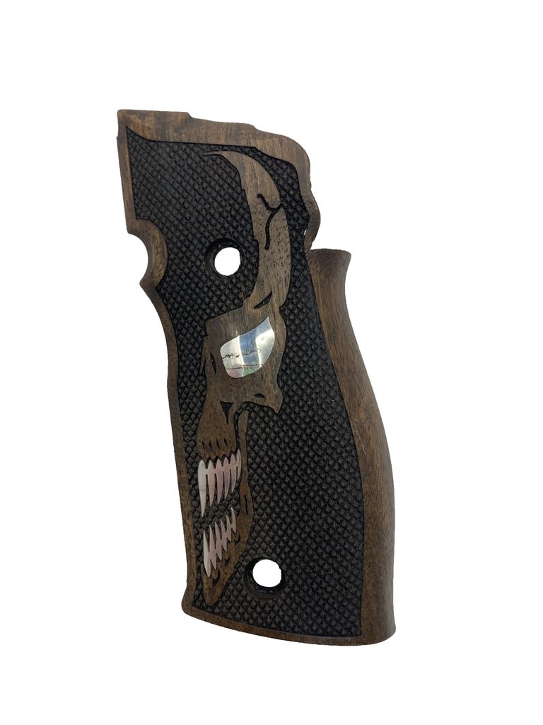 Střenky tureckého výrobce KSD pro pistole Sig Sauer P226 SAO, X-Five a X-Six ořech se stříbrným motivem.