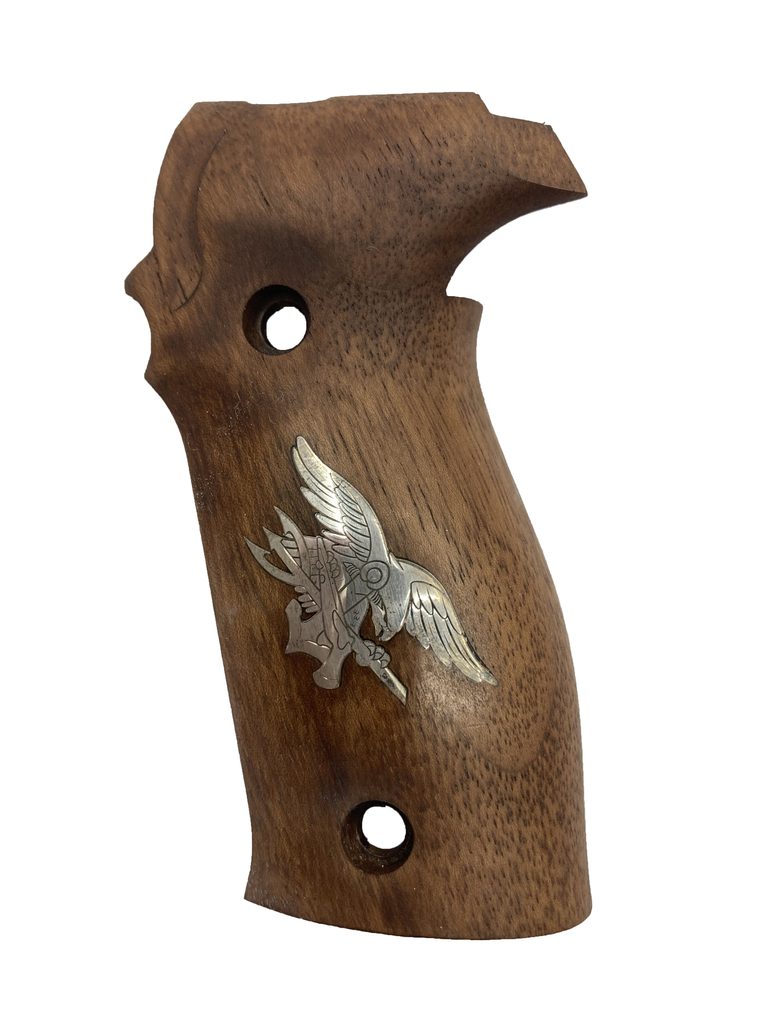 Střenky tureckého výrobce KSD pro pistole Sig Sauer P226, P226 SL a P226 v provedení ořech se stříbrným motivem.