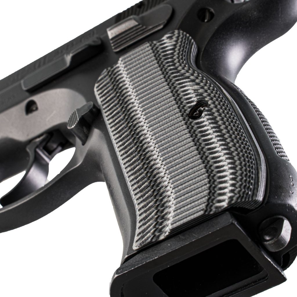 Střenky světoznámé společnosti VZ Grips pro pistole typu CZ Shadow 2. Materiál G10, barva Black-Gray (šedá a černá). Zdrsnění je střední úrovně tedy citelné při úchopu, ale ne nepříjemné. Toto zdrsnění napodobující hřbet aligátora bylo původně navrženo pro Precision Weapons Section of the U.S. Marine Corps. Hrany nejsou ostré a střenky jsou tak vhodné pro sportovní střelce i pro denní nošení.