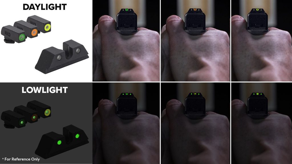 Světově nejjasnější samostatně svítící mířidla standardního tvaru. Mířidla Hyper-Bright vám zajistí jasné míření na cíl ať už střílíte za světla nebo za tmy. Světlá barva trítiových mířidel vám pomůže se ihned zaměřit na mušku, a to za jakýchkoliv podmínek. Často nemůžete predikovat kdy a za jakých podmínek budete střílet.