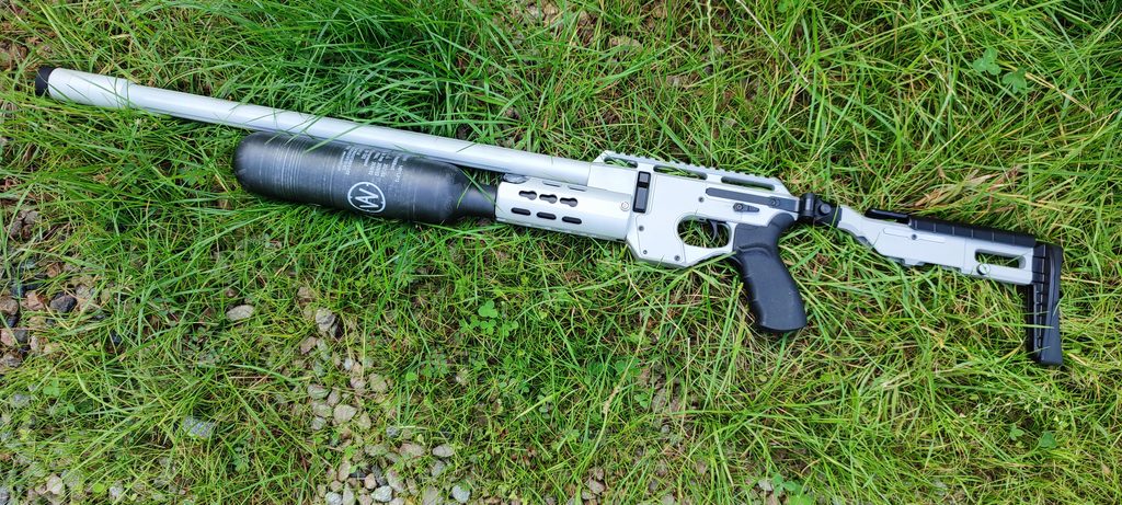 Vzduchovka AirMaks Arms Katran LL 5,5 mm je žhavá novinka pro rok 2021. AirMaks Arms Katran má odlehčenou celokovovou a sklopnou pažbu vyrobenou CNC obráběním. Botka pažby a lícnice jsou z ABS plastu. Pažba je sklopná na levou stranu a je jištěná proti nechtěnému otevření magnetem. Úchop je pistolový z příjemného měkčeného plastu a je shodný s puškami typu AR15.