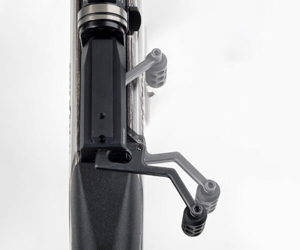 Spoušt vzduchovky je nastavitelná a v přední části je umístěná pojistka. Přebíjení vzduchovky je pomocí boční páčky – Side Lever Action. Toto řešení nám přijde pohodlnější než u předchozí verze modelu Compatto Sniper HR, který měl přebíjení pomocí přímotažného závěru. Montážní lišta pro puškohled, případně kolimátor je 11mm, montážní lišta weaver pro montáž doplňků, je umístěná v přední části pažby pod kartuší.