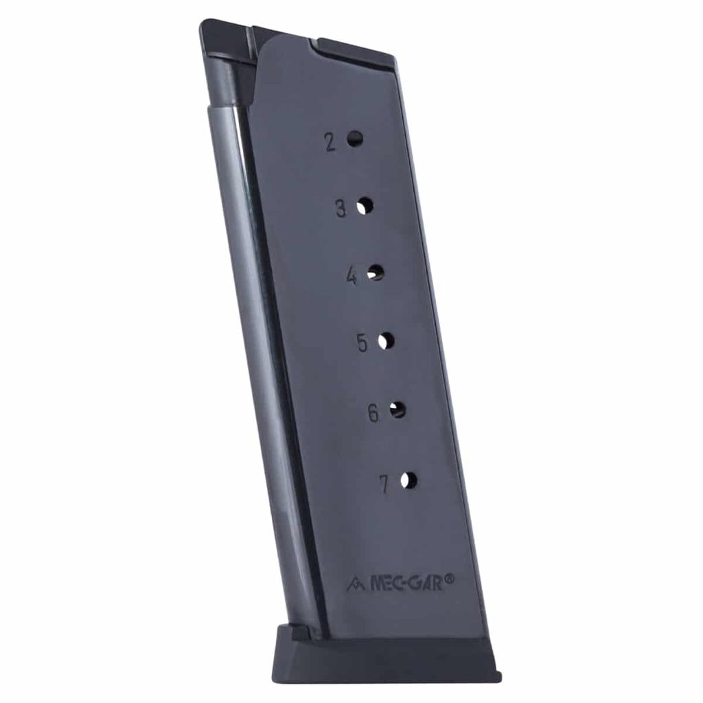 Zásobník od společnosti Mec-Gar pro pistole typu 1911 Officer compact, pro ráži .45 ACP, 7 ran, černá barva. Vysoká spolehlivost.
